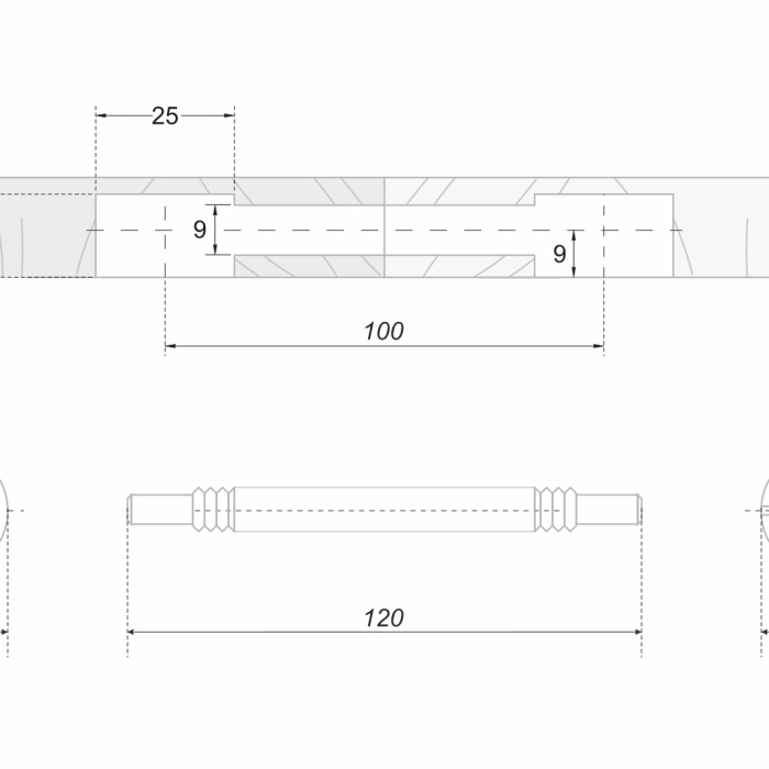 Стяжка ST11/02 для столешниц с межцентровым расстоянием 100 мм обеспечивает надёжное, плотное и незаметное соединение методом встык или наложением.