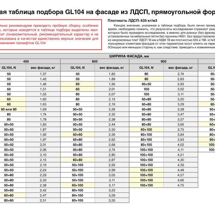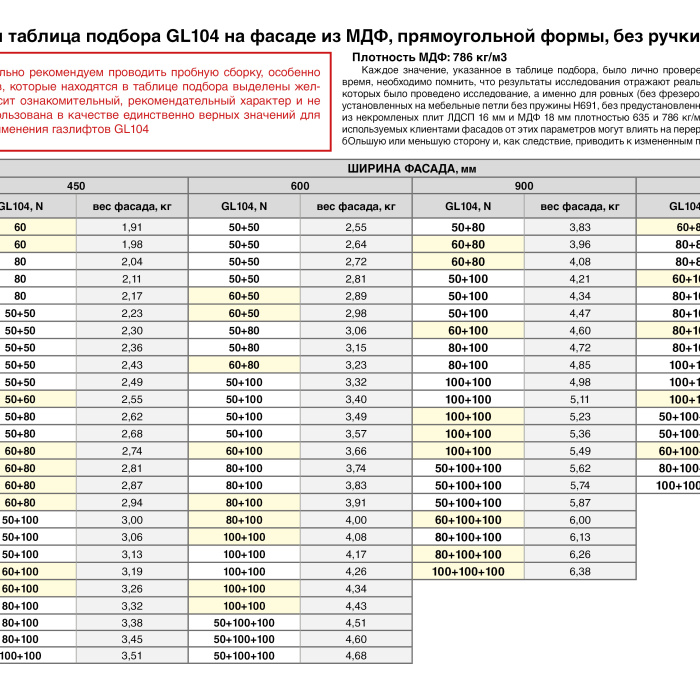 GL104 — газовый лифт, который открывает фасад вверх и может фиксировать его в любой точке. Представлен в 3 вариантах номинального усилия: 50N, 80N и 100N и рассчитан на 60 000 циклов открывания/закрывания.