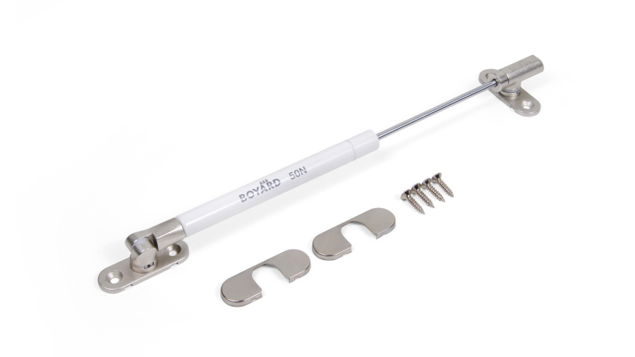 GL107 легко крепится к держателю фасада способом Clip-On — простым защёлкиванием. Декоративные заглушки в цвет газлифта (идут в комплекте) закроют крепёжные элементы и обеспечат завершённый, аккуратный вид.