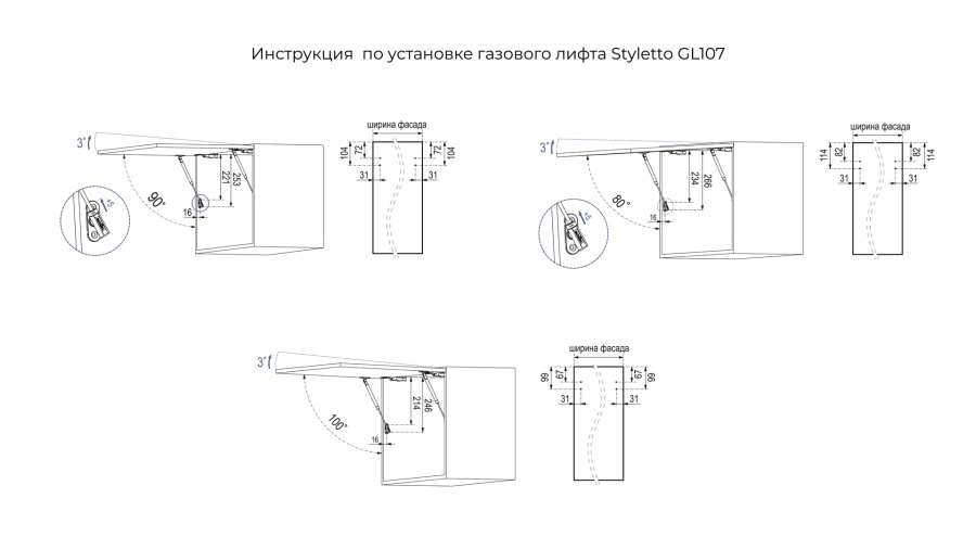 STYLETTO 107 GL107 — стильный фрикционный газовый лифт быстрого монтажа для открывания фасада вверх.