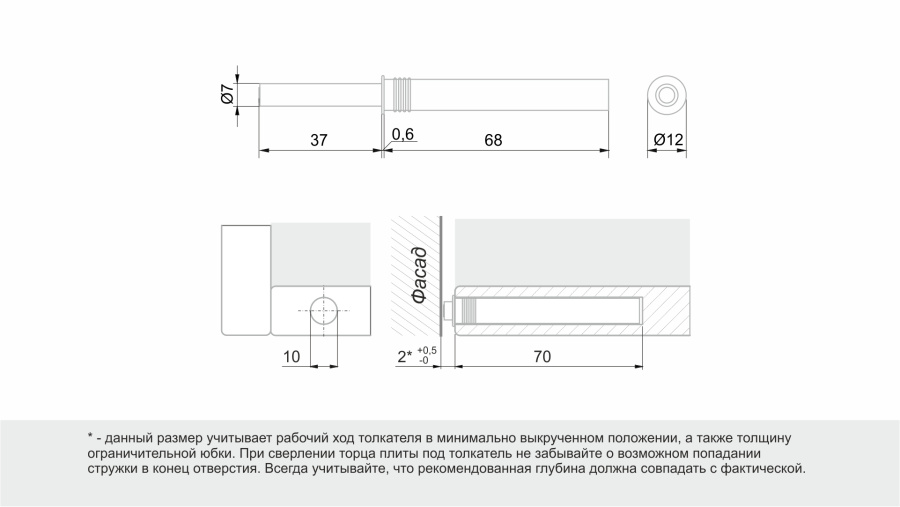 Толкатель AMF14/GR – классический компаньон мебели без ручек, он предназначен для распашных фасадов на петлях с пружиной. Способен выталкивать даже тяжелые и крупные фасады на 37 мм. Обладает регулировкой расстояния зазора между наконечником толкателя и фасадом в закрытом положении +5 мм.