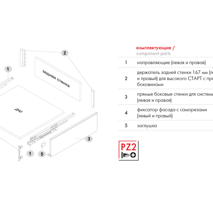 СТАРТ SOFT SB20 — комплект систем выдвижения для сборки высокого выдвижного мебельного ящика с прямыми боковинами высотой 167 мм для минимальной высоты проёма 198 мм.